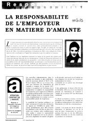 Les décrets spécifiques à l'amiante de 1996 créent des obligations nouvelles à la charge du chef d'établissement. Cette étude fait le point sur la jurisprudence applicable en matière de reconnaissance de maladies professionnelles, du fait de la mise en oeuvre de la loi du 27 janvier 1993. Elle examine ensuite quelques cas où la faute inexcusable de l'employeur est retenue. Elle traite enfin des jurisprudences relatives à la responsabilité pénale de l'employeur, notamment en ce qui concerne l'obligation générale de sécurité qui lui incombe. En conclusion, la jurisprudence risque d'être de plus en plus sévère car les retraits d'amiante sans aucun respect de la législation en matière d'hygiène et de sécurité se multiplient.