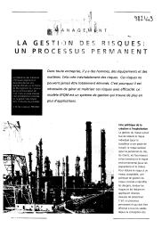 Rappel sur les bases de la gestion des risques dans l'industrie chimique en particulier : analyse des accidents, identification des dangers, méthodes d'analyse des risques, organisation au sein de l'entreprise. Le modèle EFQM (European Foundation for Quality Management) propose de former un tronc commun entre le management de la qualité, de l'environnement et de la sécurité.
