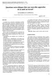 Questions socio-éthiques liées aux nouvelles approches de la santé au travail.