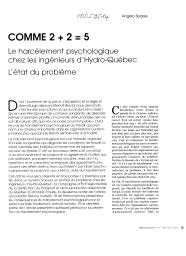 Comme 2 + 2 = 5, le harcèlement psychologique chez les ingénieurs d'Hydro-Québec. L'état du problème.