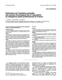 Estimation de l'incidence annuelle des cancers bronchiques liés à l'exposition au tabagisme passif professionnel en France.
