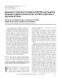 (Protection respiratoire fournie par les appareils filtrants N95 contre les poussières aéroportées et les miro-organismes dans les exploitations agricoles).
