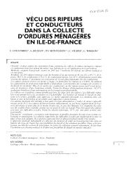 Vécu des ripeurs et conducteurs dans la collecte d'ordures ménagères en Ile-de-France.