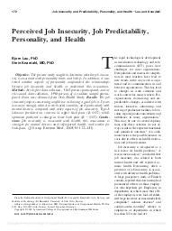 Cette étude avait pour objectif de déterminer si l'insécurité du travail était associée aux traits de personnalité et de tester si la personnalité influençait les relations entre l'insécurité de l'emploi et la santé. Une première étude a été effectuée à partir de 5 163 personnes issues de l'étude sur la santé d'Oslo (Oslo Health Study). Ils ont rempli un questionnaire, subi un examen médical et des prélèvements de sang. Six mois plus tard, un questionnaire de suivi a été envoyé à 1 946 des participants choisis aléatoirement. Les résultats ont montré que l'assurance d'avoir un bon travail dans deux ans était fortement liée à la santé, et plus particulièrement à la souffrance morale, contrairement aux autres aspects de l'insécurité de l'emploi. En conclusion, cette étude a montré que l'insécurité de l'emploi était associée à la santé, et plus particulièrement aux aspects concernant la sécurité future dans le marché du travail. Cette association était plus forte pour les souffrances mentales et la santé auto-rapportée, et plus faible pour les douleurs dorsales.