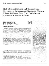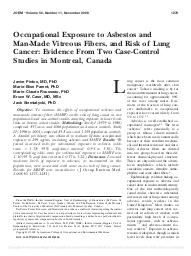 (Exposition professionnelle à l'amiante et aux fibres vitreuses artificielles, et risque de cancer du poumon : deux études cas-témoins à Montréal, Canada).