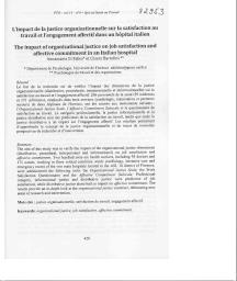 Le but de la recherche est de vérifier l’impact des dimensions de la justice organisationnelle (distributive, procédurale, interpersonnelle et informationnelle) sur la satisfaction au travail et l’engagement affectif. 266 personnels de santé (95 médecins et 171 infirmiers), employés dans trois services (cardiologie, réanimation et premiers secours) de deux hôpitaux de Florence, ont complété les échelles et le questionnaire suivants : l’Organizational Justice Scale, l’Affective Commitment Subscale et le questionnaire de satisfaction au travail. La catégorie professionnelle, la justice informationnelle et la justice distributive sont des prédicteurs de la satisfaction au travail, tandis que seule la justice distributive a un impact sur l’engagement affectif. Les résultats permettent d’approfondir le concept de la justice organisationnelle et de tracer de nouvelles perspectives de recherche et d’intervention.
