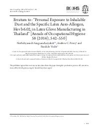 Traditionnellement, les mesures de la fraction respirable (fraction alvéolaire) sont menées à l’aide d’un échantillonneur individuel cyclone. Cependant, l’Institut de la médecine du travail (IOM) a introduit des échantillonneurs à double fraction équipés avec des inserts en mousse poreuse de polyuréthane (PUF) qui ont l’avantage d’être moins coûteux. Ces échantillonneurs sont dits "à double fraction" car l’insert permet de collecter des particules avec un diamètre D50 supérieur ou égal à 4-4,5 micromètres alors que les particules ayant un diamètre supérieur sont capturées sur et dans la mousse elle-même. L’objectif de cette étude était de tester la validité de cet échantillonneur par rapport au cyclone, dans le secteur de la fabrication de briques. Pour cela, les mesures effectuées au moyen des cyclones Higgins-Dewell ont été comparées à celles réalisées au moyen de l’échantillonneur équipé d’un insert PUF (72 mesures au total), dans 7 briqueteries américaines. Une matrice d’exposition a permis de relier les 3 sources dominantes de particules (argile, sable ou mixtes) à l’endroit où les mesures ont été effectuées. Après transformation logarithmique, les résultats ont montré que les concentrations mesurées à l’aide du cyclone Higgins-Dewell étaient en moyenne 1,9 fois plus élevées que les concentrations mesurées par les échantillonneurs à double fraction, avec une corrélation de Pearson de 0,78 (intervalle de confiance 95 % 0,66-0,85). Les corrélations entre les types de mesures ont été calculées. Il s’est avéré qu’elles variaient selon la source de particules : la meilleure corrélation a été observée pour la silice (rp = 0,88 (0,63-0,96)) et diminuait avec l’augmentation de la proportion d’argile (jusqu’à rp = 0,82 (0,59-0,93)) pour la catégorie de poussières "mixtes" et jusqu’à rp = 0,74 (0,55-0,85) pour la catégorie argile. De même, la performance de l'échantillonneur à double fraction par rapport à l'échantillonneur cyclone était négativement associée à l'augmentation de l’importance relative des particules d'argile dans la matrice d'exposition, allant d’une concentration ß = 0,96 (0,54-1,39) pour la silice à ß = 0,50 (0,33-0,67) pour les particules d’argile. En conclusion, ces résultats suggèrent que la performance globale de l’échantillonneur double-fraction dans l'industrie de la brique dépend de l'importance relative des particules d'argile dans la matrice d'exposition. De ce fait, les résultats des enquêtes d'hygiène du travail pour des concentrations proches des valeurs limites d'exposition peuvent conduire à des décisions erronées.