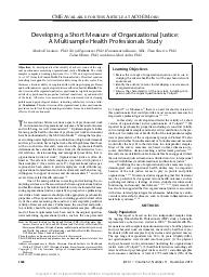 Developing a short measure of organizational justice : a multisample health professionals study.