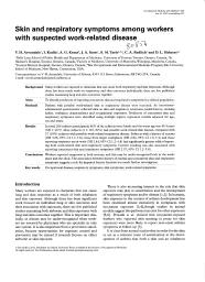 De nombreux travailleurs sont exposés à des produits chimiques qui peuvent être la cause de troubles cutanés et respiratoires. Il y a eu beaucoup d’études publiées sur ces troubles pris individuellement, mais peu les ont considérés ensemble. Le premier objectif de cette étude était d'estimer la prévalence des symptômes respiratoires et cutanés simultanés dans une population de patients, et de déterminer dans quelle mesure les travailleurs présentant de tels symptômes simultanément étaient différents de ceux qui présentaient des symptômes affectant un seul appareil. Il s'agissait d’identifier les éléments prédictifs de la déclaration de symptômes respiratoires et cutanés dans une population de patients. Les résultats ont montré que les travailleurs qui avaient des antécédents d’eczéma, étaient fumeurs, étaient employés dans de grandes entreprises, et déclaraient utiliser des protections respiratoires, étaient ceux qui présentaient plus souvent des symptômes cutanés et respiratoires concomitants. En conclusion, les travailleurs ont déclaré des symptômes aussi bien respiratoires que cutanés, et ces problèmes passent souvent inaperçus que ce soit dans les évaluations médicales ou en milieu de travail. L’association entre les antécédents d’eczéma et la survenue de symptômes simultanés respiratoires et cutanés suggère le rôle d’une altération de la fonction barrière et demande d’autres études. Les études cliniques, les évaluations des expositions, et la recherche en santé au travail devraient considérer également la peau et les voies respiratoires comme voies possibles d'exposition que comme régions des effets possibles.