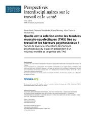 Quelle est la relation entre les troubles musculo-squelettiques (TMS) liés au travail et les facteurs psychosociaux ? Survol de diverses conceptions des facteurs psychosociaux du travail et proposition d’un nouveau modèle de la genèse des TMS.