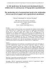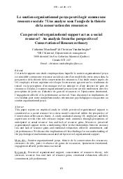 Le soutien organisationnel perçu peut-il agir comme une ressource sociale ? Une analyse sous l’angle de la théorie de la conservation des ressources.
