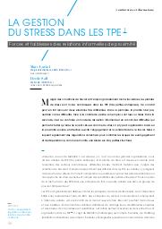 La gestion du stress dans les TPE. Forces et faiblesses des relations informelles de proximité.