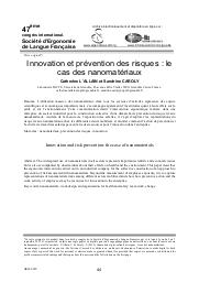 L’utilisation des nanomatériaux constitue aujourd’hui une innovation technologique majeure dans tous les secteurs d’activité. Ces nouveaux matériaux représentent des enjeux scientifiques et économiques importants et posent des questions quant à leurs effets sur la santé et sur l’environnement. Cette communication décrit l’intervention ergonomique réalisée sur une plate-forme de transfert technologique dans le cadre de la construction d’une démarche de prévention du risque lié aux nanomatériaux. Les auteurs interrogent ici les espaces de débat sur le travail comme un instrument de prévention permettant la transformation des représentations du risque chez les salariés et la production collective de règles.