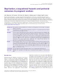 Deprivation, occupational hazards and perinatal outcomes in pregnant workers.