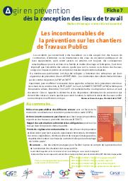 Les accidents qui surviennent à des travailleurs ou à des usagers lors des travaux de construction, d'entretien ou de maintenance des voies de circulation publiques et de leurs équipements, qu'ils soient aériens ou enterrés, ont toujours des conséquences catastrophiques pour la victime et sa famille, le maître d'ouvrage et l'entreprise. Il est donc impératif que l'ensemble des acteurs, quelle que soit la nature ou la durée des travaux, analyse les risques et prenne en compte les mesures de prévention adaptées. Cette fiche présente le document "Les incontournables de prévention sur les chantiers de travaux publics" (référence INRS-Biblio 00093431) qui rappelle la démarche et les dispositions de prévention qui doivent être mises en oeuvre quelles que soient la nature, la taille et la durée des travaux confiés à une entreprise ou effectués en régie.