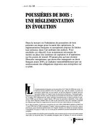 Dans la mesure où l'inhalation de poussières de bois présente un risque pour la santé des opérateurs, la réglementation française et européenne impose de limiter leur présence dans l'air ambiant des ateliers. Pour atteindre cet objectif, il est notamment nécessaire de mettre en place des systèmes de captation et d'aspiration sur les postes de travail. D'autant plus qu'une récente Directive européenne, qui devra être transposée en droit français avant 2003, se traduira vraisemblablement par un renforcement des obligations imposées aux entreprises sur ce plan.