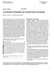Cet article montre qu'un faible taux d'humidité dans les cabines des avions peut provoquer des effets néfastes sur les passagers et le personnel navigant. Des études sur la qualité de l'air des bâtiments montrent qu'une augmentation modeste, environ 10 %, de l'humidité relative semble diminuer un grand nombre des symptômes tels que l'irritation des yeux, de la peau et des voies aériennes supérieures.