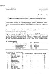 Cet article rapporte les résulats d'une étude portant sur les dermites de contact provoquées par deux types de résines phénol-formaldéhyde : le résol (ou PFR-2) et le novolak.
