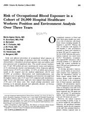 Risk of occupational blood exposure in a cohort of 24,000 hospital healthcare workers : position and environment analysis over three years.