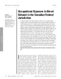 Occupational exposure to diesel exhaust in the Canadian federal jurisdiction.