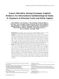 L'hypothèse selon laquelle les travailleurs de l'asphalte présentent un risque accru de mortalité par accidents industriels et par d'autres causes extérieures a été examinée. Les taux de mortalité pour causes extérieures et causes violentes de décès dans une cohorte d'employés de l'industrie de l'asphalte de 7 pays européens et d'Israël ont été comparés à ceux de la population générale. Il n'a pas été trouvé de preuves que la mortalité pour des causes hors travail était plus importante chez les employés de longue durée travaillant dans l'application et le mélange de l'asphalte. Il existait un risque accru de mortalité dû à des causes extérieures chez les employés de courte durée. Cependant, aucun des accidents mortels survenus chez les employés de courte durée ne semble être survenu durant la période d'activité dans les entreprises étudiées. Globalement, il n'a pas été trouvé de preuves soutenant l'hypothèse que les travailleurs de l'asphalte présentent un risque supérieur d'accidents du travail ou de la route mortels. La mortalité par causes externes n'a pas augmenté dans cette population prise dans son ensemble, mais une augmentation des risques chez les sujets embauchés de façon récente méritent selon les auteurs plus d'attention.
