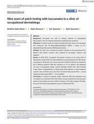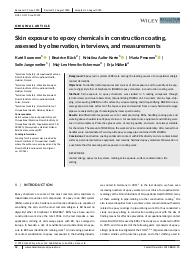 Les résines époxydiques sont l'une des principales causes de dermatite de contact allergique d’origine professionnelle. Les objectifs de cet article étaient d’identifier les expositions à risque et les sources d'exposition cutanée, et de quantifier l'exposition cutanée au bisphénol A diglycidyl éther (DGEBA), lors des travaux sur les revêtements de construction. L'exposition cutanée aux produits chimiques époxydiques a été étudiée dans 5 entreprises de revêtement par des entretiens et des observations visuelles, par la quantification du DGEBA sur la peau de 12 travailleurs par bandes adhésives, par la mesure du DGEBA sur 23 surfaces par frottis et dans une conduite d'égout. Des extraits d'acétone provenant des bandes, des lingettes et de la sciure de bois d'un tuyau d'égout récemment durci ont été analysés par chromatographie en phase gazeuse et spectrométrie de masse. Les risques identifiés étaient, par exemple, le mélange de résines époxydiques, la manipulation de pots de revêtement et le travail au-dessus de l'épaule. Des taches d'époxy sur les outils, sur l'équipement et sur les vêtements, par exemple, ont été observées dans tous les lieux de travail. Les gants de protection étaient de qualité variable et pas toujours adaptés aux produits chimiques. La quantité de DGEBA sur la peau des travailleurs variait considérablement. Tous les manches d'outils étaient contaminés. Un tuyau d'égout en époxyde vieux de deux jours contenait 3,2 % de DGEBA. Le revêtement de construction implique un contact cutané avec les résines époxydiques directement et par l'intermédiaire de surfaces contaminées, d'équipements de protection individuelle et de matériaux époxy récemment durcis. L'observation est une méthode utile pour évaluer l'exposition de la peau lors des travaux sur des revêtements.