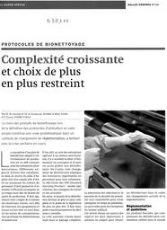 Protocoles de bionettoyage. Complexité croissante et choix de plus en plus restreint.