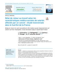 Délai de retour au travail selon les caractéristiques médico-sociales de salariés affectés par un cancer : étude transversale dans le Sud-Est de la France.