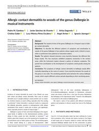 Les bois des arbres de l’espèce Dalbergia sont une cause fréquente de dermatite allergique de contact. Cet article présente une étude de 4 cas (deux fabricants d'instruments et deux musiciens) de dermatite de contact allergique aux bois de l’espèce Dalbergia utilisés pour des instruments de musique. Les bois de l’espèce Dalbergia, tels que le palissandre d'Inde orientale et le cocobolo, sont fréquemment utilisés dans la fabrication d'instruments comme les guitares et les flûtes. Les différents schémas de symptômes et de sensibilisation observés chez ces patients sont décrits. Ils ont montré une réactivité croisée vis-à-vis des différents types de bois de l’espèce Dalbergia. Les musiciens ont présenté des symptômes uniquement au niveau des zones de contact direct, tandis que les fabricants d'instruments ont développé des symptômes de dermatite aéroportée. Les tests cutanés ont confirmé la sensibilisation aux différentes espèces de Dalbergia. En conclusion, la sensibilisation aux bois de l’espèce Dalbergia peut entraîner une sensibilité croisée à d'autres espèces du même genre. Les symptômes diffèrent selon le type de contact avec le bois et les périodes de sensibilisation varient en fonction du type de bois et des caractéristiques du contact. Cette étude met en lumière l'importance de reconnaître et de gérer les risques de dermatite de contact allergique chez les professionnels travaillant avec des bois exotiques dans l'industrie musicale.