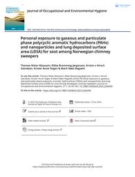 Personal exposure to gaseous and particulate phase polycyclic aromatic hydrocarbons (PAHs) and nanoparticles and lung deposited surface area (LDSA) for soot among Norwegian chimney sweepers.