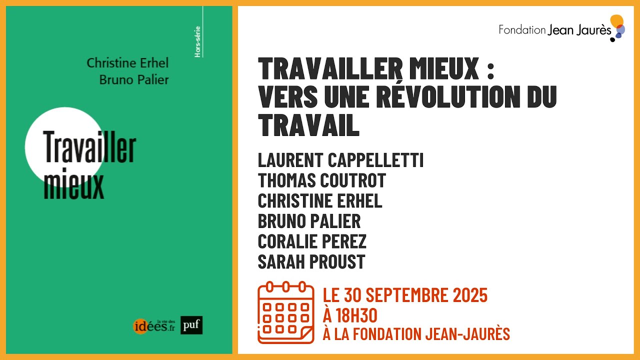 | Replay de la conférence "Travailler mieux : vers une révolution du travail" Après l’ouvrage Que sait-on du travail (Presses de Sciences Po, 2023), plusieurs chercheurs publient Travailler mieux (PUF, 2025), ouvrage qui propose des pistes concrètes pour améliorer la qualité de l’emploi, renforcer la démocratie au travail et réussir les transitions numérique et écologique. À partir d’exemples en France et à l’étranger, les auteurs plaident pour une rupture avec les pratiques managériales dominantes afin de redonner sens, santé et bien-être au travail. Une conférence-débat organisée par la Fondation Jean-Jaurès s’est tenue le 30 septembre. Visionnage |