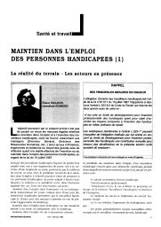 Maintien dans l'emploi des personnes handicapées (1). La réalité du terrain. Les acteurs en présence.