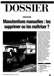 Un accident du travail sur trois est provoqué par la manutention manuelle qui reste un facteur majeur de pénibilité et de risque, au point de motiver, depuis 1995, une campagne nationale de prévention organisée par la Caisse nationale de l'assurance maladie. En plus, le risque inhérent à la manutention manuelle implique également celui du recours hâtif à des solutions techniques insuffisantes. En effet, les moyens techniques d'aide à la manutention n'apportent pas automatiquement la bonne solution, l'espace de travail et l'organisation restant à analyser. Un exemple de réalisation dans une PME est présenté ainsi que des actions régionales.
