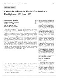 Une analyse des taux d'incidence (SIR) a été menée pour déterminer le risque relatif de cancer chez les pompiers comparés à la population générale de Floride. Parmi 34 796 hommes et 2 017 femmes, 970 cas de cancer chez des hommes ...