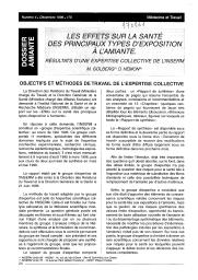 Les effets sur la santé des principaux types d'exposition à l'amiante. Résultats d'une expertise collective de l'INSERM.