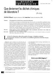 L'activité d'un laboratoire utilisant des produits chimiques, à finalité de recherche, d'enseignement, d'analyse ou de contrôle, est naturellement génératrice de déchets dangereux. La gestion de ces déchets chimiques est souvent un problème complexe du fait de la multiplicité des produits. Après avoir rappelé la réglementation existante en matière de déchets dangereux, les auteurs de cet article montrent qu'en fonction de l'activité du laboratoire, des solutions adaptées existent, qui vont de la détoxication "in situ" des petits résidus chimiques (résidus neutralisables), jusqu'au stockage en sécurité de l'ensemble des déchets (résidus non neutralisables) avant enlèvement par une entreprise spécialisée. Quelques exemples sont donnés (traitement des résidus de sodium métal, d'hydrure d'aluminium et de lithium, de bromure d'éthidium, de cyanure de sodium, piégeage des effluents soufrés ; incompatibilités pour le stockage des déchets non neutralisables). Enfin, des mesures sont proposées pour diminuer la quantité des déchets chimiques.