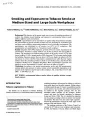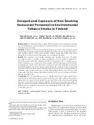 En Finlande, le "Tobacco Control Act" ou acte de contrôle du tabagisme a été amendé afin d'inclure les locaux de travail dans son application. Cet article décrit l'étude réalisée sur la méthode développée pour estimer l'exposition au tabagisme passif dans les locaux de travail. Cette méthode utilise une méthode courante de détermination des composés organiques volatils (COV). Elle fait appel à un échantillonnage d'absorption active, à la désorption thermique et à la chromatographie gazeuse. Testée en laboratoire et sur le terrain, elle peut être utilisée pour mesurer simultanément l'exposition aux COV et à la fumée de cigarettes. Les auteurs de l'étude recommandent d'utiliser la nicotine comme indicateur de l'exposition à la fumée dispersée à partir des zones fumeurs.