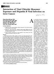 Increased morbidity odds ratio of primary liver cancer and cirrhosis of the liver among vinyl chloride monomer workers.