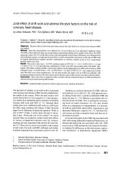 Les effets combinés de l'âge, de la pratique d'une activité physique de loisir, du tabagisme, de la consommation d'alcool, et des différentes formes de travail posté sur la prévalence des troubles du sommeil et de la somnolence diurne ont été étudiés chez des travailleurs de différents secteurs d'activités (postes et télécommunications, chemins de fer, et entreprises industrielles). En conclusion, les différents systèmes de travail posté, travail en 2 équipes et travail de nuit permanent compris, semblent augmenter la fréquence de troubles du sommeil. En particulier, le travail en 3 équipes semble interagir avec les facteurs liés au mode de vie en augmentant les effets néfastes et en diminuant les effets bénéfiques sur le sommeil et la somnolence.