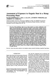 Le but de cette étude était d'évaluer l'exposition aux différents constituants de la poussière organique générée lors de la transformation du chanvre chez un petit groupe de travailleurs. Les niveaux de poussières inhalables, d'en...