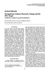 Cet article présente les grands axes de la recherche sur l'asthme professionnel au Royaume-Uni : le problème du diagnostic, les conséquences du développement de la maladie, les troubles du comportement, la prévention et la recherc...
