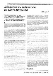 Ce thème sur le rôle du médecin du travail dans le passage aux 35 heures est traité sur 4 articles : les effets de la réduction du temps de travail ; les 35 heures, pour quel travail (négocier sur les 35 heures amène à faire remonter à la surface des aspects du travail réel ; de la création d'emplois à la lutte contre l'exclusion ; "changer le travail" : l'urgence d'un débat de société) ; réduction du temps de travail et santé (réduction du temps de travail et marges de manoeuvre ; flexibilité et intensification du travail ; récupération ; vie sociale hors travail ; conditions d'une réduction du temps de travail favorable à la construction de la santé) ; passage aux 35 heures et rôle du médecin du travail pour éviter l'intensification et la densification du travail (compte rendu d'un séminaire tenu le 13 mars 1999, qui a abordé les points suivants : intensification et densification du travail ; le travail une activité fondamentale pour se construire individuellement et socialement ou une nuisance à réduire dans le temps ; flexibilité ; élargissement des plages horaires travaillées et mise en équipes, un empiètement croissant sur la vie privée malgré une diminution du temps travaillé ; parole syndicale et parole des salariés ; rôle et place de la médecine du travail).