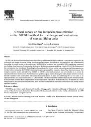 (Etude critique du critère biomécanique retenu dans la méthodologie du NIOSH pour la conception et l'évaluation des tâches du lever des charges).