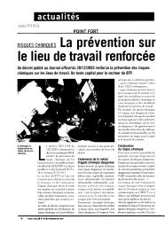 Le décret 2003-1254, publié au Journal officiel du 28/12/2003, renforce la prévention des risques chimiques sur les lieux de travail. Le secteur du BTP est bien sûr concerné par ce décret, en raison de la présence et de l'utilisation d'agents chimiques divers et variés sur chantiers ou en ateliers. Cet article présente les nouvelles obligations réglementaires apportées par ce décret, qui comprend une partie générale sur l'évaluation du risque chimique et la surveillance médicale associée et une partie spécifique consacrée aux valeurs limites d'exposition professionnelle pour les poussières de bois et de plomb.