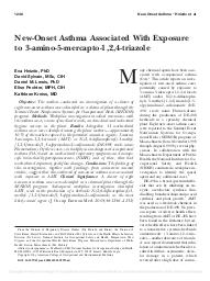 Cette étude a examiné un groupe de 8 cas d'asthme d'apparition récente identifiés dans une usine chimique par l'intermédiaire du programme SENSOR (Sentinel Event Notification Systems for Occupational Risks). L'enquête sur le terrain a inclus des entretiens avec les patients, une revue des dossiers médicaux, et des relevés d'hygiène industrielle et médicaux dans l'usine. Au total, 11 cas d'asthme liés au travail ont été identifiés parmi les travailleurs de l'usine, soit environ 10 % des travailleurs exposés aux agents pouvant être en cause : 3-amino-5-mercapto-1,2,4-triazole (AMT) ou N-(2,6-difluorophényl)-5-méthyl-[1,2,4]triazolo[1,5-a]pyrimidine-2-sulfonamide (DE-498, nom commercial Flumetsulam). Parmi ces cas, 6 avaient été diagnostiqués comme asthme professionnel par un médecin sur la base des symptômes respiratoires liés au travail et d'une hyperréactivité bronchique non spécifique, et parmi ces derniers, trois présentaient des altérations du débit expiratoire de pointe liées au travail. En conclusion, les résultats de cette étude, ainsi que d'expérimentations animales simultanées, suggèrent que cet épisode d'asthme d'apparition récente était lié à l'exposition à l'AMT.