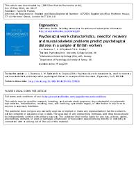 Publié dans : Work and Stress, Royaume-Uni, vol. 18, n° 3, juillet 2004, pp. 245-254, ill., bibliogr. (En anglais)