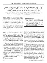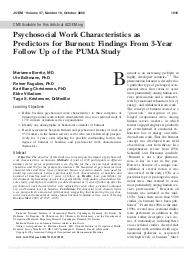 (Caractéristiques psychosociales du travail comme éléments prédictifs de burnout : résultats du suivi sur 3 ans de l'étude PUMA).