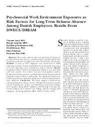 Publié dans : Journal of Occupational and Environmental Medicine, Etats-Unis, vol. 47, n° 10, octobre 2005, pp. 1015-1025, ill., bibliogr. (En anglais)