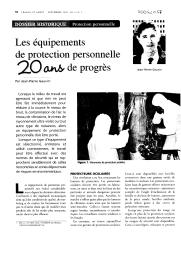 Les équipements de protection individuelle (EPI) ont évolué considérablement depuis les dernières décennies. Confrontés à des impératifs économiques ainsi qu'à des conditions de qualité, de marketing et de confort, les fournisseurs n'ont pas eu d'autres choix que de modifier leurs produits afin de les rendre plus attrayants, moins chers et plus efficaces. Les progrès technologiques accomplis sont détaillés pour les EPI suivants : protecteurs oculaires, vêtements de protection, gants de protection, équipements de protection respiratoire et protecteurs auditifs.