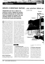 Cet article présente les caractéristiques de grues pouvant être utilisées dans un environnement urbain restreint : les grues à montage automatisé (GMA) et les grues à montage rapide (GMR). Ces grues peuvent être montées rapidement et sont idéales pour des chantiers de moins de 6 mois. En revanche, les grues à montage par élément (GME) ne doivent être installées que par des spécialistes et ne doivent être utilisées que sur des gros chantiers de plus de 6 mois. Des conseils sont donnés pour réaliser le bon achat, pour choisir l'emplacement, pour dispenser la formation au maniement de la grue et pour assurer sa maintenance. Les règles de sécurité face au vent sont également rappelées.